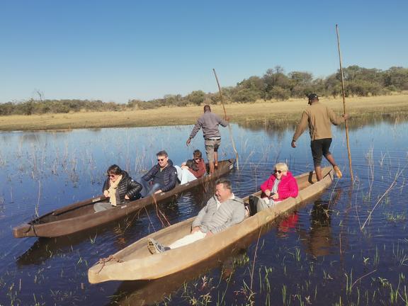 Oddballs’ offers no motorised activities. Each guide has his own mokoro (pl. mekoro), (the genuine wooden article, not the plastic replica), in which he’ll take you gliding through the Okavango to nearby islands, where he’ll walk you through magnificent scenery to view game, birds, insects, medicinal plants, tracks, signs, droppings, and other fascinating natural phenomena.