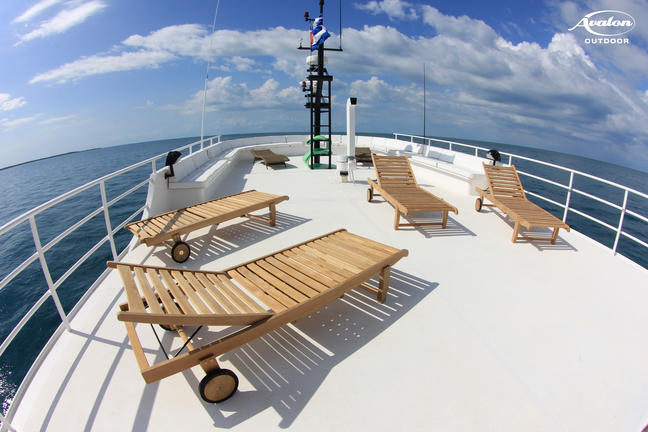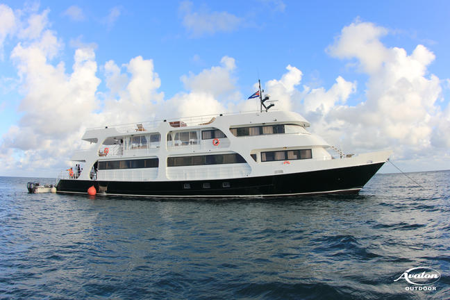 The 131-foot Jardines Avalon FII is a luxury motor yacht with 10 Deluxe staterooms. All cabins feature private bathrooms and 2 beds, air-conditioning with individual thermostats. The yacht accommodates 20 passengers maximum and is built and maintained to SOLAS shipping standards. It is diesel-powered, cruises at 10 knots, and has 110-volt power onboard.