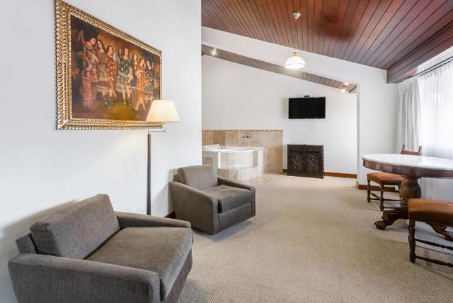 Wyndham Costa del Sol Cusco is located in the heart of the historic city centre, within walking distance of the Plaza de Armas and the Cathedral of Cusco. Guest rooms feature colonial-style décor and include heating, flat-screen televisions, minibars, and complimentary Wi-Fi. Guests can dine at the on-site restaurant offering Peruvian and international cuisine or enjoy drinks in the lounge bar. The hotel is close to local attractions such as the Centro Historico De Cusco, Ekekos - Arte & Colores, and the Religious Art Museum. Leisure facilities include a spa with massage services, a garden, and a fitness centre.