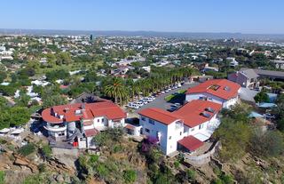 Perched on a hill in the neighbourhood of Eros, overlooking Windhoek, Hotel Thule is an excellent accommodation option for leisure and business travellers. The hotel offers beautifully appointed and comfortable rooms with air conditioning, tea/coffee-making facilities, safes, TVs, en-suite bathrooms, minibars, and workspaces. Facilities and services include a restaurant, a terrace, a swimming pool, and Wi-Fi.