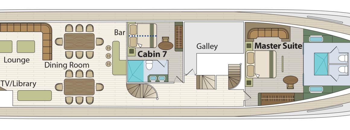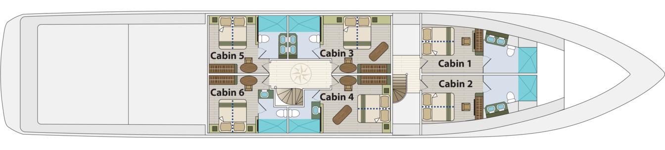 - One huge Master Suite is available, boasting 38m2 of cabin space.