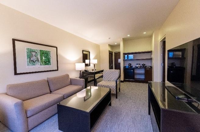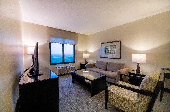 Unwind or stay productive in this one-bedroom suite, with a separate living area, complete with sofa bed and HDTV. Stay on top of business at the desk with ergonomic chair and keep in touch with complimentary WiFi.