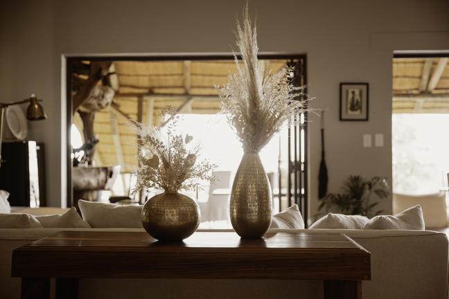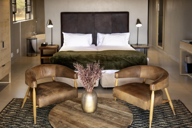 Our spacious chalets have been integrated into nature with loving care. They are placed so far apart and aligned so cleverly, that there is no sign of a neighbor. As a result, the rooms offer a high degree of privacy and unobstructed views of the savannah. The ingredients for a relaxed sojourn are 75 m² of living space, tasteful natural furnishings and colors, air conditioning and Wi-Fi in the room, minibar, tea and coffee station, and above all the incredible view. Great attention to detail rounds off the experience.