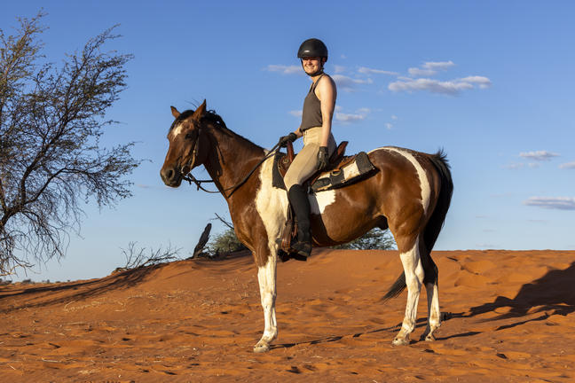 Set within the 7,000 acre private nature reserve, DESERT HOMESTEAD OUTPOST welcomes you with a relaxed natural hospitality. Enjoy the endless panoramic view from one of the 12 guest houses or from the main house with its restaurant, lounge and pool terrace, picturesquely situated at the foot of a mountain. In the adjacent plains you can frequently watch some animals, that are roaming in the endless savannah. Guests are invited to make use of different activities offered by the lodge, excursions to Sossusvlei as well as horse safaris and tours through the scenic countryside. The Outpost is located in a private nature reserve, adjacent to the world heritage site ‘Namib Sand Sea'. A half-day guided hike for experienced hikers, the NAMIB MOUNTAIN TRAIL is leading over mountains and through the plain . Starting in the early morning at Desert Homestead Lodge, the walk goes through breathtaking landscape to the Outpost, where a cold drink and the pool are waiting.