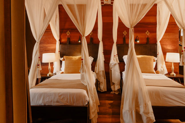 The rooms are carefully sited to invite both couples who seek a private, secluded stay and young families. Ajoined tents with a shared bathroom and veranda enable families to keep an eye on little ones, yet soak up the wilderness experience.