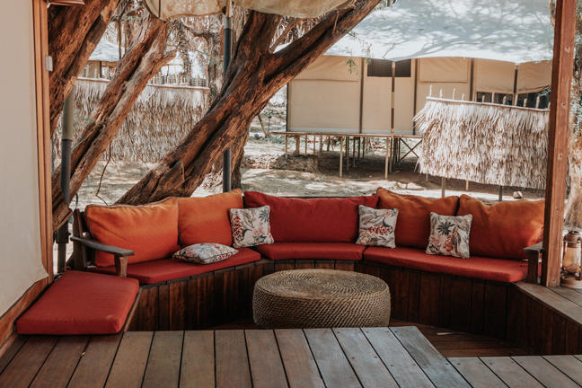 Six spacious tented rooms that complement a central dining area with indoor and outdoor sitting