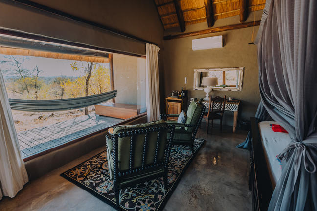 A beautiful and spacious suite featuring a private deck with hammock overlooking the natural bush landscape. The suite boasts a mini bar, air-conditioning, a full en-suite bathroom with an indulgent bath, indoor and outdoor showers.