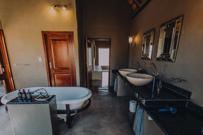 An average size of 59m²/635.07ft², the private suite located separately from the main building has a lounge area with fireplace, and a walk-in closet with sit-down vanity desk. The outside seating area offers views of the tropical paradise-inspired Leeu House pool, and the mountains. Here too is the perfect place to consider sculptor Dylan Lewis’s Leopard On A Rock.