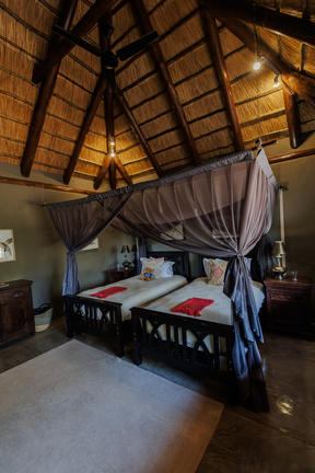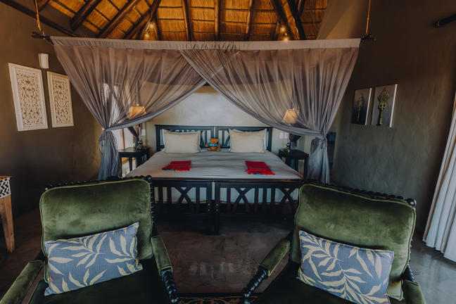 The Little Garonga accommodation includes three fully en-suite, thatched and air-conditioned suites built under thatch.