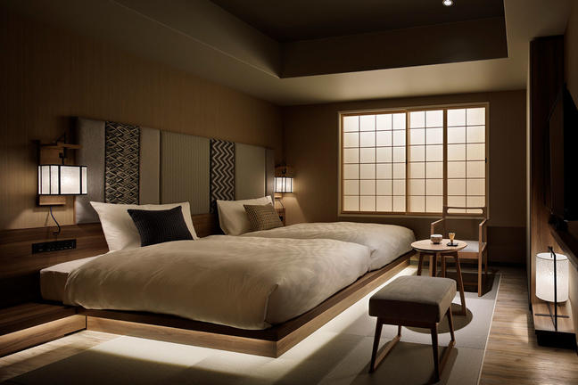 Rooms are serene, with wooden flooring, warm lighting, plush beds, high-speed Wi-Fi, air conditioning, and beautifully detailed Japanese touches like “tatami” entryways and custom textiles. Bathrooms feature clean lines, high-quality amenities, and deep soaking tubs or strong showers. Nightwear, slippers, and thoughtful extras make each room feel extra comfortable.