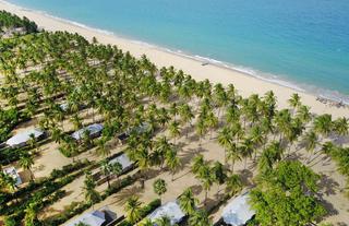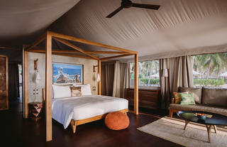 Verblijf op deze voormalige kokosnootplantage in een van de 17 ruime ecologische luxetenten met buitendouche, kingsize bed en privéterras met ligbed in de prachtige tuin of aan het strand.