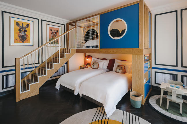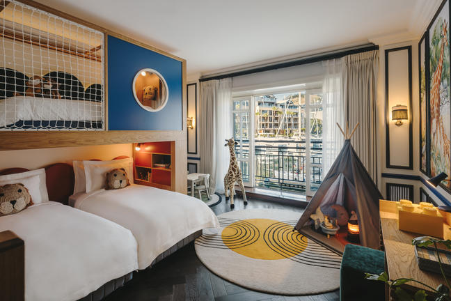 This Marina-facing kids’ haven blends elegance and playfulness. For up to 3 explorers, it features a loft, safari murals, and a treasure trove of toys. It interleads to a suite or Deluxe Mountain View room, offering an unforgettable family escape.