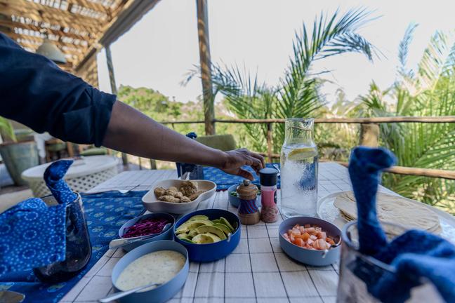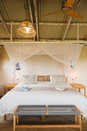 The rooms do not have air-conditioning as we are trying wherever possible to model sustainable practices. However, each room is equipped with both a ceiling fan and a standing fan. During winter months when temperatures drop at night, additional blankets are provided. Beds are complete with mosquito nets, comfortable pillows, a flat sheet, a fitted sheet and blankets. Bath and beach towels are provided and the rooms are serviced daily.