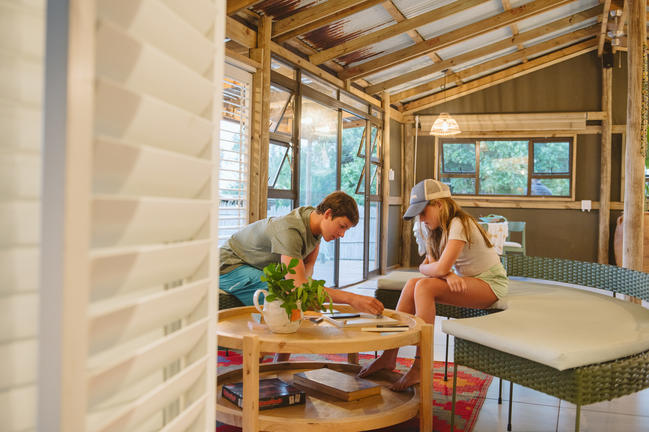 Kipling's Cottage offers a charming and spacious family-friendly retreat, designed with comfort and convenience in mind. The master bedroom features a practical en-suite bathroom, with bath and shower together with folding glass doors that open onto a peaceful verandah. The children's bedroom is a playful haven, with bunk beds and two single beds, comfortably sleeping up to four children. A chest full of toys and a cabinet brimming with books add to the fun, while the room opens onto the same verandah and a dedicated play area with a shaded sandpit.