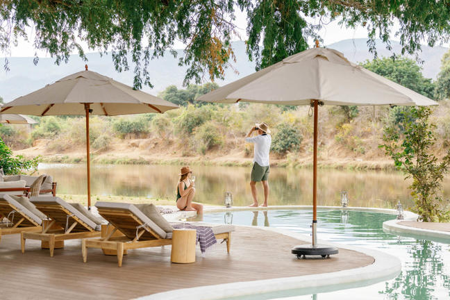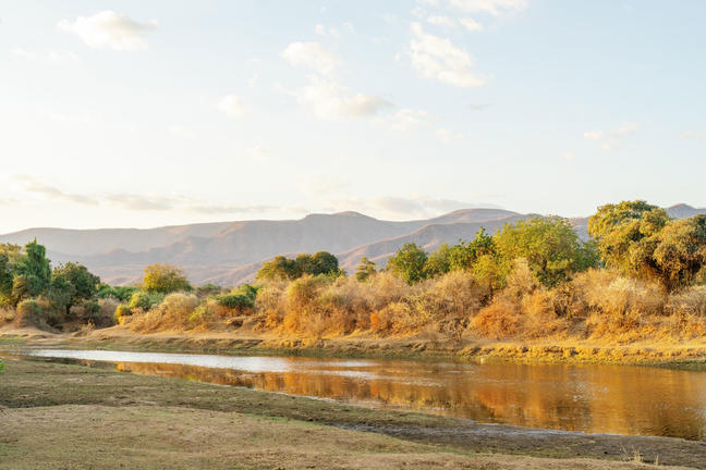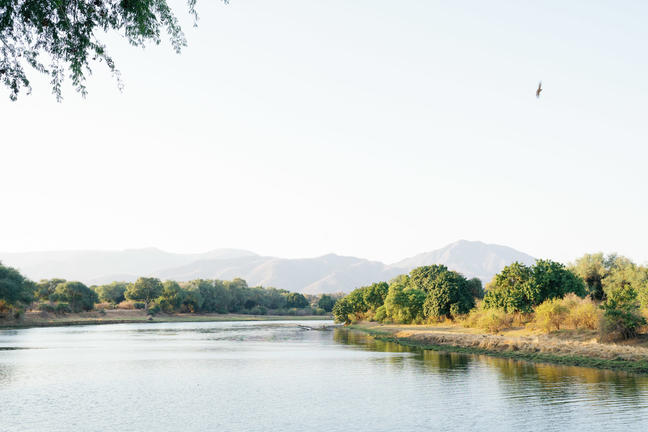 Time + Tide Chongwe House rests on a peaceful stretch of the Chongwe River, set against a beautiful mountainous backdrop.