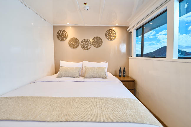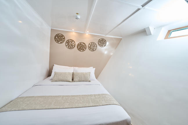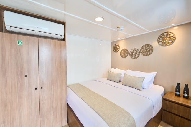 Cozy cabins provide comfortable lower beds, twin or double, as well as aircon & hot showers.