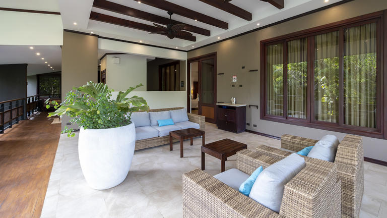 Phil’s Villa is a magnificent Costa Rican vacation home rental at Arenal Observatory Lodge & Spa, located about 800 meters (0.5 miles) from the hotel’s reception. It is recommended that guests have their own transportation, or enjoy long walks, to stay here. However, shuttle transportation can be arranged for when you want to skip the walk.