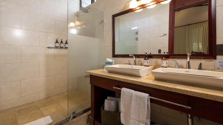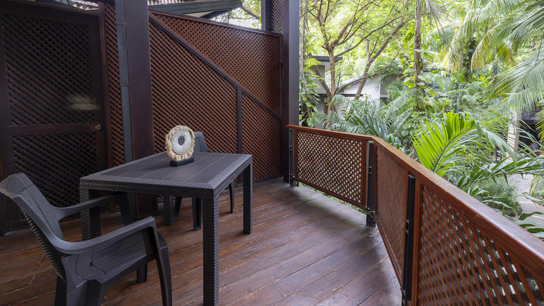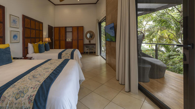 Features: •20 Tropical Suites •Two Queen beds •Living area •Mini-refrigerator, coffee maker, safety box •A/C, ceiling fan, cable TV •Private terrace with direct forest view
