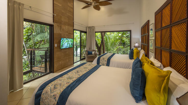 Standard RoomsCredit: Arenal Observatory Lodge & TrailsOur standard rooms are designed to provide you with comfort, relaxation, and a sense of connection with the awe-inspiring beauty of the Arenal Volcano. Each room features two comfortable queen beds, ensuring a restful night's sleep for you and your fellow travelers. The rooms are thoughtfully designed with your comfort in mind, featuring modern amenities and tasteful decor that reflects the natural beauty of the surrounding rainforest. The ambiance is warm and inviting, creating a serene sanctuary where you can unwind and rejuvenate after a day of exploring the wonders of the area. One of the highlights of our standard rooms is the partial view of the majestic Arenal Volcano from the deck or garden. Imagine waking up to the sight of the towering volcano shrouded in mist, or enjoying a tranquil evening watching the sunset behind the peaks of the volcano. It's a breathtaking experience that connects you with the raw power and magnificence of nature, right from the comfort of your room. The rooms also feature a private deck or garden where you can relax and take in the panoramic views of the surrounding rainforest. It's a perfect spot to sip your morning coffee or unwind with a book, while immersing yourself in the serene beauty of the lush vegetation, listening to the sounds of nature, and taking in the fresh tropical air.