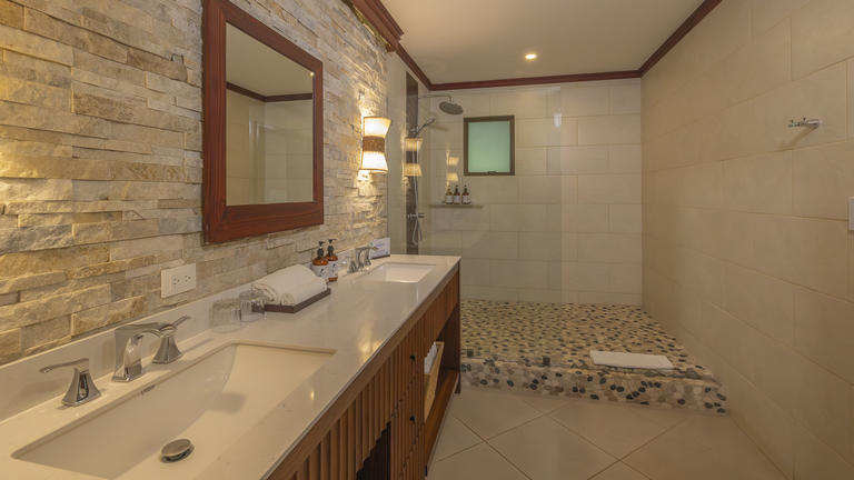 Nestled among lush tropical gardens, this suite offers a fresh and serene atmosphere, ideal for unwinding and embracing the beauty of the natural surroundings. Its spacious design, combined with natural light and warm details, creates a comfortable and relaxing ambiance.