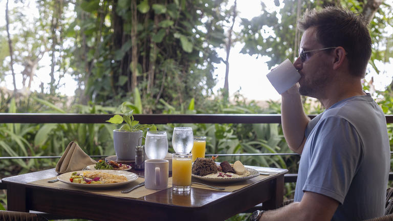 Our ample breakfast selection will fill you up for a day of adventure with hot coffee and tea, fresh juices, cereals, eggs, bacon, fresh homemade breakfast bread, and Costa Rica’s famous “gallo pinto” breakfast of rice, black beans, and spices.