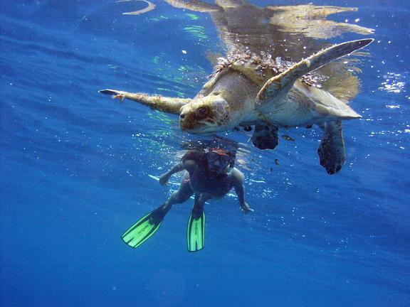 Så, enten det er halvdag eller hel dag, vil du ofte være i selskap med flere forskjellige arter delfiner, havskilpadder, rokker, flygende fisk og under sesongmessige vandringer - majestetiske knølhvaler.