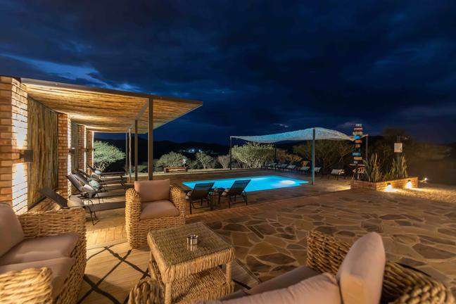 Die Lodge befindet sich in Fort Sesfontein, wo die Ruinen einer historischen Festung aus dem Jahr 1896 mit viel Liebe zum Detail aus authentischen Materialien erbaut wurden. Es ist ein Denkmal, das Schutz und Sicherheit sowie modernen Komfort bietet. Die Gastgeber der Lodge sind die Nachfahren der Ureinwohner der Damara, Herero und Himba.