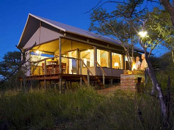 Die 16 maßgeschneiderten Zelte mit eigenem Bad sind aus einer Kombination von Segeltuch, Holz und lokalem Kalkstein gebaut. Mit ihrer eigenen 8 Quadratmeter großen privaten Veranda und den bodentiefen Fenstern sind diese Zimmer geräumig und luftig. Jedes große Badezimmer hat ein übergroßes Fenster und eine Dusche mit Blick in den umliegenden Busch. Die gebürsteten Zementböden und Kalksteinwände halten die Zimmer in der Nachmittagssonne kühl. Vier dieser Zelte sind ideal für Familien mit kleinen Kindern geeignet, da sie über ein Schlafsofa für zwei Kinder.