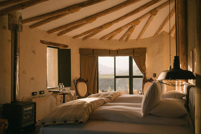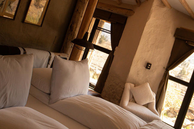Pirca rooms welcome you to the utmost authentic simplicity. Each Pirca is equipped with a bathtub, wood-burning stove, and a private outdoor terrace featuring a sitting area, offering some of the finest views at PUQIO. Choose between a King or two twin beds, and enjoy additional amenities like a terrace, reading chair, interior shower, and the convenience of connecting rooms via a shared mudroom.