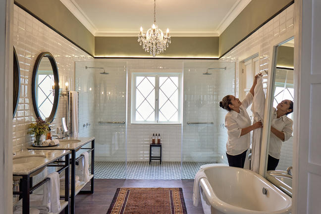 Magnificent and spacious, with original high-vaulted ceilings that recall ancient Parador times. Each boasts a stand-alone bathtub and a private sitting area.