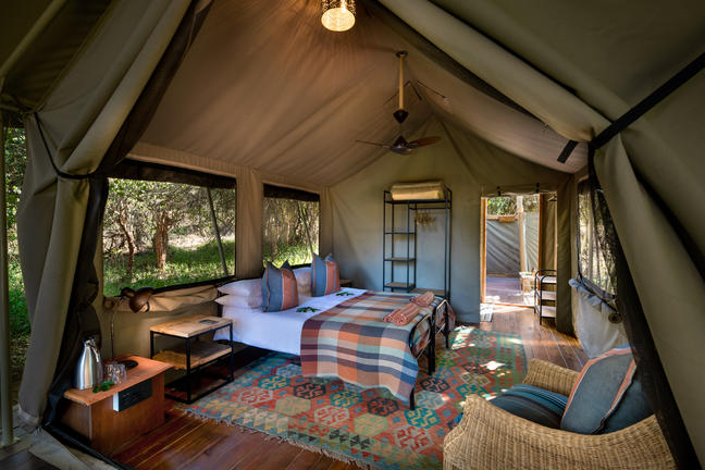 All of our luxury tents have fans, safes for valuables, mosquito nets, extra length king size beds with en-suite bathrooms and outdoor showers.