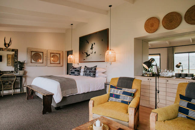 Unwind with guided safaris or African-inspired treatments at the Fijnebos Spa—complete with a heated pool and four cool, refreshing pools offering breathtaking views across the reserve.