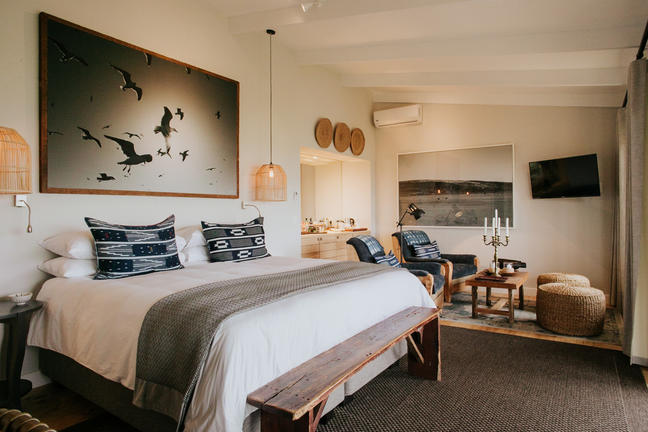 Our new Luxury Rooms (50m2) strike the ideal contrast between bold urban structure, paired with soft, bespoke interiors for ultimate comfort. Cleverly designed to include all that is relevant and functional for modern travellers, these rooms feature beautifully crafted finishes that are both conscious and simple. Stackable glass doors open onto private patios (ground floor) or terraces (first floor), allowing guests to soak up the relaxed outdoor surrounds, whilst enjoying their own privacy. Green living herringbone oak floorboards enhance the light-filled space. Modern and well-appointed bathrooms (with separate loos) with floor to ceiling tiles in monochromatic hues of natural grey, white and black. Generous sized showers (no bath) are a feature, whilst also ensuring water efficiency. Some ground floor rooms offer inter-leading options.