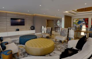 The three Presidential suites are located on the top floor. These suites offer two bedrooms which each lead into a central lounge area with a furnished wraparound balcony beyond. En-suite bathrooms lead off each bedroom. The total area of each suite is 264 square metres.