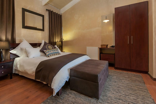 Deluxe rooms have a king sized bed or twin beds with air conditioning, underfloor heating and a ceiling fan. Ensuite bathrooms offer his & hers basins, bath and showers and towel heaters. Mountain and vineyard views.