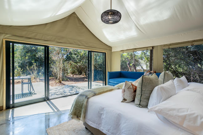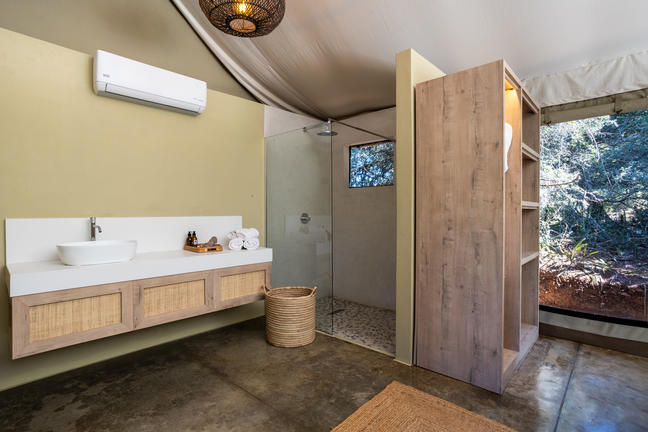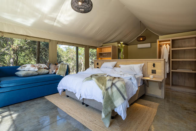 Inside is simple, thoughtful comfort. A proper bed, crisp linen, warm wood underfoot. The kind of shower you won’t forget — half open, part rustic, all refreshing. Everything smells like fresh air and veld. You’ll catch yourself staring out of windows, not for anything in particular ...