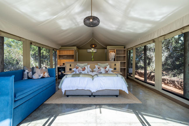 Air Conditioning, Balcony / Deck, Bath, Bed Linen, Bunk Bed, Complimentary Wi-Fi, Cooking Equipment, Cooking Facilities, Electrical Outlets, En Suite Bathroom, Family Safari Tent, Fan, Fireplace, Fridge, Fridge/Freezer, Hairdryer, Hand Towels, Internet Access (Complimentary), Laundry Service (Available), Lounge Area, Mini Bar, Mosquito Nets, Plunge Pool, Private Lounge / Sitting Area, Private Pool / Jacuzzi, Queen Bed, Safe, Shower, Tea / Coffee, Television, Twin Bed, Verandah