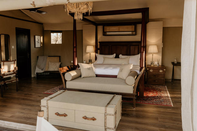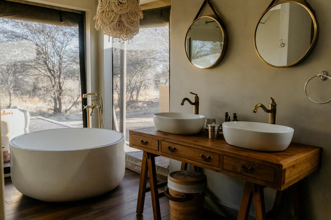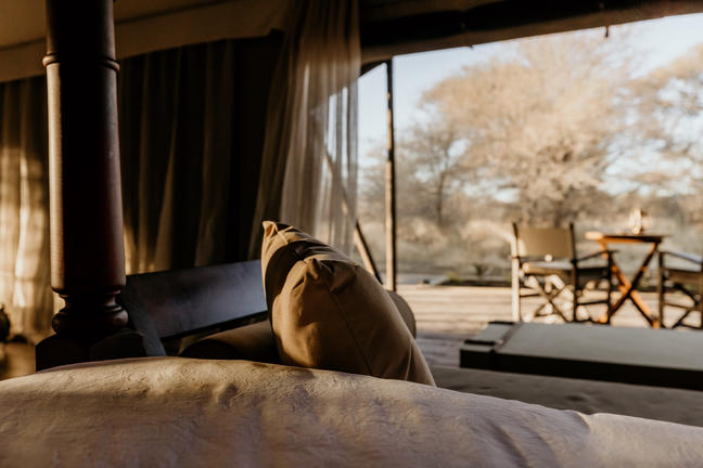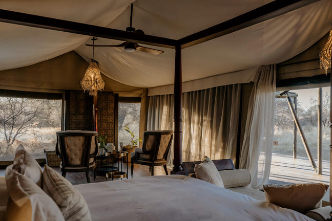 Otjiwa Thorn Bush Tented Camp offers an authentic, immersive safari experience where luxury and adventure come together in perfect harmony. Whether guests are seeking a peaceful retreat, an unforgettable family getaway, or an exciting adventure in the wild, Thorn Bush promises an experience that will stay with them long after their journey ends. The camp features 10 spacious tented suites designed for ultimate comfort and privacy. Each suite includes a private wooden deck overlooking the tranquil riverbed, allowing guests to relax and immerse themselves in the stunning surroundings. The suites are equipped with air-conditioning, luxurious en-suite bathrooms, and outdoor showers for a serene nature experience. For families, two suites are designed with adjoining bedrooms and private bathrooms, providing ample space and comfort for all. At Thorn Bush, adventure and nature await. Guests can track rhinos on foot with expert guides, embark on thrilling game drives through the savanna, or take guided night drives to see nocturnal wildlife, ensuring every moment is filled with excitement. For a more tranquil experience, guests can enjoy birdwatching, cultural tours to Ombu Village, horseback riding, and rejuvenating spa treatments.