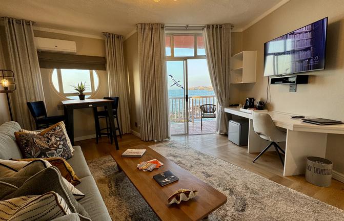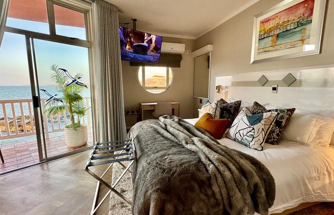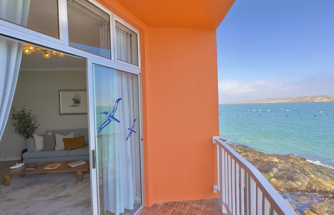 The Lüderitz Nest Hotel enjoys a unique location on the rocks directly at the sea, with uninterrupted views over the Atlantic. The hotel’s private tidal beach with walk-on jetty, unique in Namibia, allows guests to get close-up to the water.