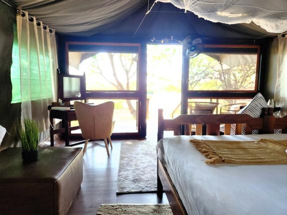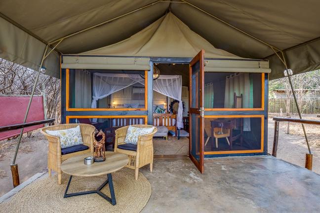 The Chobe National Park is home to largest population of elephants in the world, with the population numbering approximately 85 000. In addition to these majestic giants, there is also an abundance of wildlife. Elephant Valley Lodge lies south of the Kazangula border crossing within the Kasane Forest Reserve which is adjacent to the Chobe National Park. The camp comprises 20 'meru' style luxury safari tents and can accommodate a maximum of 40 guests. The lodge is situated in the Lesoma Valley and overlooks an extremely productive water hole. Elephant Valley Lodge features 20 'meru style' safari tents, each of the tents is able to accommodate two adults. The tents also feature en-suite shower and toilet. Guests at Elephant Valley are encouraged to join our qualified guides on both daily activities, these include a river cruise along the Chobe River in one of our spacious skimmers and an afternoon safari from the comfort of a custom bult game viewer in the Chobe National Park.