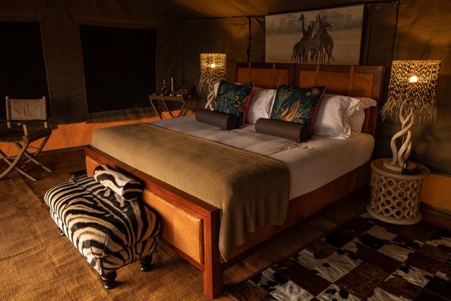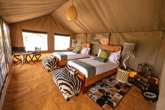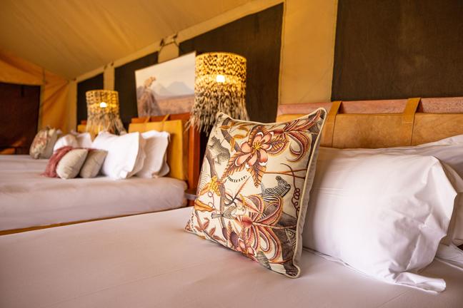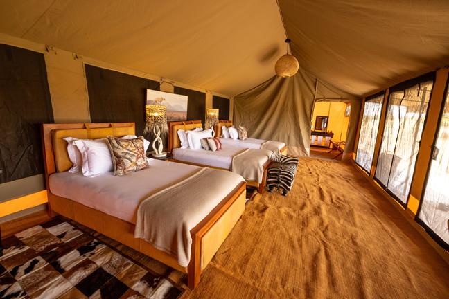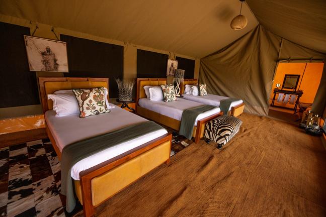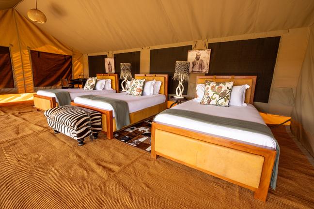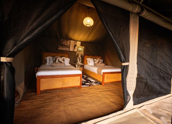 • 2 family tents each with a King size bed and two separate beds with an adjoining lounge in between to