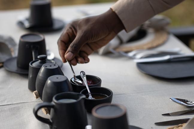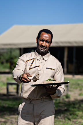 • Large Separate dinning tent, that offers large spaces for private or group dinning. • Flexible meal options, endeavoring to meet all dietary requests • Butler service • Private Meals – honeymoons etc. • Bush meals – weather permitting