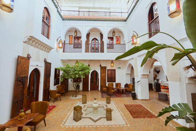 Riad Fes Ziyat & Spa is located in Fes Medina, Morocco. All rooms are equipped with cable television and high-speed internet access. There is an on-site restaurant that serves traditional Moroccan cuisine and international dishes. Leisure facilities include Hammam and spa treatments, with a pool also available for guests.