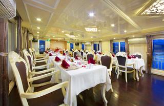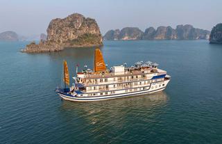 Signature Halong Cruise is a luxury wooden cruise ship that sails through Bai Tu Long Bay in Vietnam. The ship features comfortably furnished guest suites that are equipped with modern amenities, including air conditioning, a TV, a safe, and a private bathroom. During their stay, guests can enjoy international cuisine at the on-site restaurant. Additional facilities include a bar and a spa.