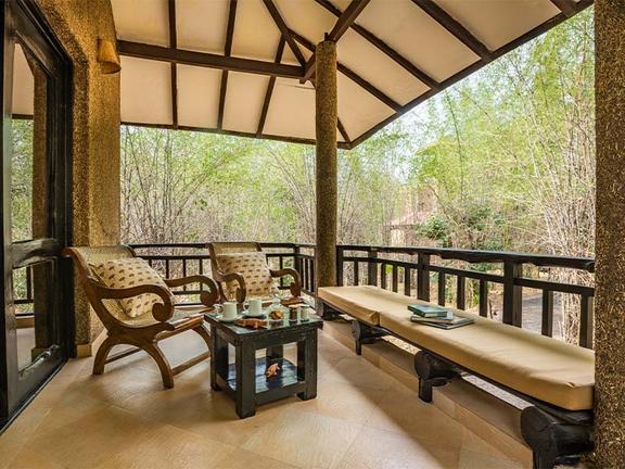Each of the 14 cottages at the lodge features an en suite room with a patio, sitting area, bedroom, indoor and outdoor bathrooms, and a deck looking out to the exquisite beauty of the bush. The interiors are the right combination of rustic and contemporary elegance. During their stay, guests can look forward to delicious meals at the restaurant and embarking on scenic curated tours in the comfort of a Jeep.