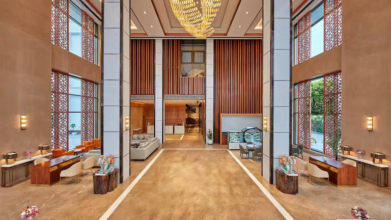 El Novotel New Delhi Aerocity se encuentra en Nueva Delhi. El alojamiento cuenta con elegantes habitaciones y suites equipadas con comodidades modernas, como televisores LED, aire acondicionado, cajas fuertes electrónicas, estaciones de trabajo y acceso Wi-Fi. Los huéspedes pueden disfrutar de una comida en el restaurante del hotel y tomar una bebida refrescante en el bar del hotel. Las instalaciones de ocio incluyen una piscina, un centro de fitness y un spa.