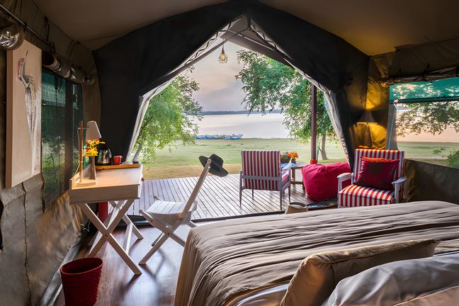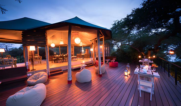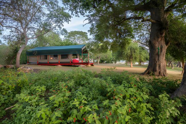 Spacious 720 Sq. ft South African made tented Lodges entwined with teak rustic furniture and luxurious amenities