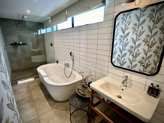 In addition there is an elegant bathroom with walk-in shower, separate toilet, double vanity and a freestanding feature bath underneath a skylight to admire the star studded skies whilst taking a relaxing bath.