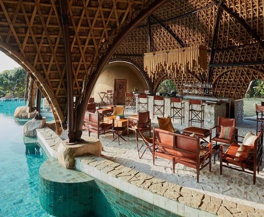 The 55 square metre Cocoon Suite boasts soaring vaulted ceilings, offering jungle views from the double-height, double-glazed facades. A four-poster king-sized bed and a spacious bathroom are centred around a free-standing handmade copper bathtub. The suite's décor is a combination of colonial expedition style and contemporary design, highlighted in natural colours and premium materials, from the teak floor to dark leather details. The private outdoor viewing deck overlooks a watering hole designed to attract a diverse array of fauna and flora, perfect for early morning bird-watching. The Cocoon Suite offers a most glamorous camping experience.