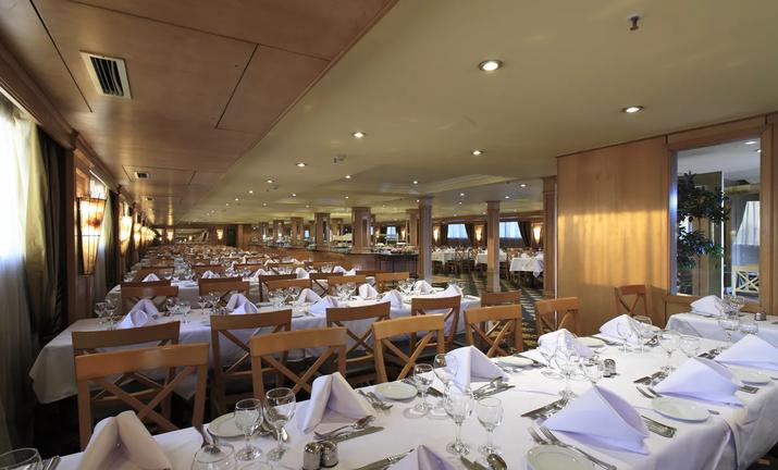 El Iberotel Crown Empress es un crucero de lujo de 5 estrellas que cuenta con 128 cabinas, un entorno espacioso, un servicio más personalizado y refinado, programas de entretenimiento a bordo y cocina gourmet. Los huéspedes pueden disfrutar de la cocina tradicional y moderna en el restaurante a bordo o relajarse en el cómodo bar con una bebida refrescante. Los huéspedes a bordo del barco pueden relajarse en la sauna, el baño de vapor y el servicio de masajes de a bordo. Otras instalaciones a bordo del barco incluyen un salón de belleza, equipos de fitness, una tienda de regalos y una piscina con bar.